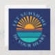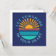 Una plantilla de foto redonda sobre un fondo azul oscuro. Haga clic en personalizar para cambiar la puesta de sol a su propia imagen, y el texto a la suya, o cómpralo como está.
