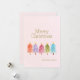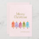 Brillante y alegre, esta tarjeta de "Feliz Navidad" presenta árboles de Navidad en acuarela con un fondo rosa claro y fuente decorativa.