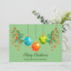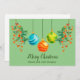 Para aquellos a quienes les gusta una apariencia más contemporánea para las fiestas, Christmas Floral y Ornament es para ti. Este diseño presenta colores y diseños navideños no tradicionales. El follaje floral tiene un ramito de bayas de naranja y los adornos son verde azulado, naranja y verde lima. El texto se puede personalizar. En la parte posterior de la tarjeta hay un cuadro de texto que te permite agregar tu propio mensaje de vacaciones. Si lo prefieres, puedes eliminar el cuadro y escribir tu mensaje.