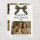 Envíe saludos navideños elegantes con esta tarjeta plana festiva con un arco de la marina y de las mantas doradas, tipografía atemporal y espacio para sus fotos familiares favoritas. Un giro moderno en el estilo clásico de vacaciones, esta tarjeta de Navidades de personalizable le permite actualizar nombres, año y mensaje para un mantenimiento personalizado. Perfecto para las familias que quieren combinar tradición con sofisticación.