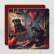 Tarjeta plana Día de San Valentín Pug - Celebra el amor con esta encantadora tarjeta de San Valentín que incluye un pug negro dulce. Perfecto para los amantes del pug o para los amantes de los dibujos animados, esta tarjeta le da un toque encantador al mensaje de San Valentín.