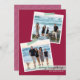 Una tarjeta de vacaciones minimalista y moderna adecuada para cualquier persona. La tarjeta cuenta con dos ranuras para fotos cuadradas desfasadas "pegadas" con cinta washi de rayas diagonales verdes y blancas sobre un fondo rojo magenta intenso. Personalízala con tu propio saludo y nombre, con más opciones para agregar texto o fotos en la parte posterior.