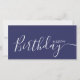 Esta moderna y elegante tarjeta plana presenta el texto blanco Happy Birthday en la parte delantera y en la parte trasera lo personaliza con tu nombre o apellido. El fondo es azul marino.