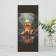 Un niño con una chaqueta roja sentado en una roca por un cuerpo de agua tranquilo y reflexivo, acompañado por su perro. El chico parece triste y su fiel compañero se compadece con él. El lugar está situado en un bosque místico de ambiente tranquilo. Photoshop CS5 de arte digital