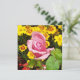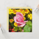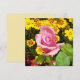 Tarjeta plana rosa y flores amarillas