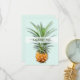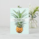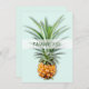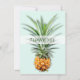 Tarjeta de nota de agradecimiento para una piña simple. Verde pálido con imagen de piña dorada y banner de "cinta" con texto de "gracias". Invertir es color verde claro y sólido sin texto. Útil para cualquier ocasión para agradecer a alguien especial. Se muestra aquí en un papel mejorado con esquinas redondeadas que es fácil de cambiar.