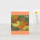 Los diferentes tonos de naranja y amarillo y libre de estas hojas de plantas tropicales hacen de este telar alegre. El interior está en blanco para tu propio mensaje.