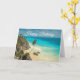 Tarjeta Playa tropical con palmeras barridas de viento Cum