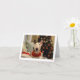Pasa una Navidad muy alegre con un adorable bull terrier que lleva un jersey navideño, una corbata de lazo festiva y un precioso árbol al fondo.