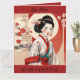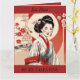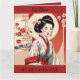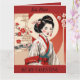 Tarjeta plegable del Día de San Valentín retro, vintage, con una hermosa Geisha con kimono. El texto es editable o se puede eliminar si lo prefiere. También se puede utilizar como tarjeta de cumpleaños o tarjeta de aniversario.
