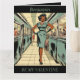 Tarjeta plegable del Día de San Valentín retro, vintage y elegante de mujer en el metro de los años 50. El texto es editable o se puede eliminar si lo prefiere. También se puede utilizar como tarjeta de cumpleaños o tarjeta de aniversario.