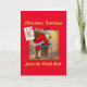 Este Santa Claus vintage baja por la chimenea con una bolsa llena de juguetes. El diseño incluye un matasellos del Polo Norte y de ENTREGA ESPECIAL. Esta tarjeta se puede personalizar y tiene un sobre配套 que también se puede personalizar.
