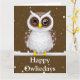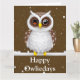 Hermosa búho de nieve vintage "Happy Owlieday" vacaciones dobló tarjeta de saludo con texto de saludo fresco dentro. Esta tarjeta viene con la opción de personalización de nombres para usted y sus seres queridos.