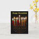 ¡Es hora de encender la menorah para Hanukkah! Las velas se aglutinan en la octava noche de Hanukkah, como se ve en una celebración en casa. Nota plegada tradicional, en blanco dentro del mensaje. El mensaje de la portada también es personalizable, por lo que puede personalizar como desee.