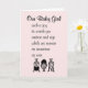 Una graciosa tarjeta de cumpleaños feliz para nuestra hija, con un poema y un ilustracion malos, acerca de cómo nuestra hija se está haciendo mayor (ya no es una niña) pero seguimos siendo tontos de bonito. "Nuestra niña" está flanqueada por sus padres que están parados en sus cabezas.
