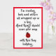 Esta tarjeta tiene una linda mariquita roja con manchas negras, y un poema corto de un autor desconocido: Estoy mandando suerte y deseos envueltos en un abrazo. Las cosas buenas deberían venir a su manera con esta pequeña mariquita.