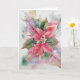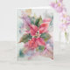 Una hermosa acuarela representada por una planta de poinsettia muestra hojas rojas y verdes vibrantes, acentuadas por suaves toques de rosa y blanco. El fondo se funde en pasteles blandos, mejorando la naturaleza delicada y festiva de la composición.