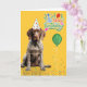 A truly adorable German Shorthaired Pointer pup in a party hat with confetti and a balloon is sure to bring fun birthday wishes to the GSP doggy mom or dad.
