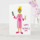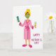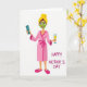 This card shows a cheerful woman centered on a white background, enjoying a cozy at-home spa moment that feels like a friendly wink to self-care 👩. She wears a soft pink robe tied at the waist with matching slippers, and her hair is wrapped in a bright yellow towel above a smooth green face mask and an easy, contented smile. In her left hand she holds a teal remote, while her right hand lifts a slim flute glass filled with a sparkling golden drink, adding a romantic, celebratory touch ❤️. The scene stays simple and uncluttered, letting the gentle colors and relaxed pose do most of the talking. To the right of the figure, the words “HAPPY MOTHER’S DAY” appear in uppercase letters, set in a dark, high-contrast color for easy reading. The text sits roughly mid-height beside her, balanced with the illustration so neither feels crowded. Soft pastel tones—pink, yellow, teal, and green—stand out crisply against the white space, with the glass catching a small gleam of gold.