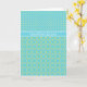 Una tarjeta de moda Get Well con un patrón de mezcla de puntos de Polka y un patrón de Daffodil en amarillo pálido en fondo turquesa.