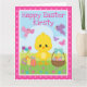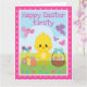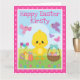 Tarjeta Pollito de primavera y huevos de chocolate en Pasc