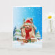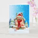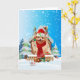 Tarjeta Pomerania en la nieve con regalos de Navidades
