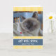 Tarjeta Ponte bien pronto para pop, gato enfermo en cesta