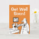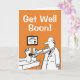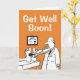 Tarjeta de cumpleaños para un paciente hospitalario. Ponte bien pronto la tarjeta personalizado graciosa. Crea tu propio mensaje interno. Fondo naranja.