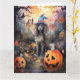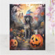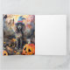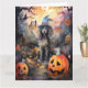 Tarjeta Poodle de Halloween con calabazas espeluznante