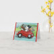 Tarjeta Poodles en convertible rojo vintage