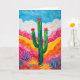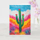 This greeting card features a colorful, pop art style portrait of a cactus in a desert scene.