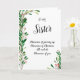Una tarjeta de Navidad para tu hermana o con cualquiera con quien creciste... hermanita, prima, tía, mejor amiga vecina, etc. Cambiar o mantener nuestros mensajes en el frente o dentro de la tarjeta. Un diseño botánico de vacaciones con bayas rojas y delicadas hojas verdes añade un hermoso y simple aspecto vacacional.