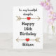 Una feliz tarjeta de hija de 16 años con flechas purpurinoso y corazones rojos. Podrás personalizar con su nombre. Dentro de esta tarjeta de hija de 16 años, dice "¡¡Deseándote amor, felicidad y risas hoy y todos los días!!" Puede editar fácilmente su mensaje de cumpleaños. La parte trasera de esta tarjeta de 16 años dice Feliz cumpleaños.
