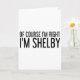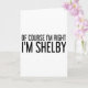 Tarjeta Por supuesto que tengo razón, soy Shelby Nombre di