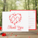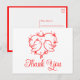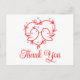 Esta encantadora tarjeta postal de pájaros enamorados es una forma encantadora de expresar su gratitud. La delicada ilustración del corazón rojo, junto con la sencilla paleta de colores rojos y blancos, crea una apariencia suave y romántica que es perfecta para bodas al aire libre en verano o celebraciones de jardines de primavera. Ideal para los amantes de la naturaleza, este diseño combina elementos boho con adorable arte de pájaros. Es una forma encantadora de enviar su agradecimiento con un toque de amor extra. Esta tarjeta también se puede personalizar para varios eventos.