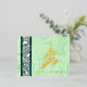 Tarjeta postal navideña con lámina de oro real - verde abstracto con un árbol de Navidad de lámina de oro que desea al destinatario una Feliz Navidad!