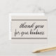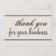 Este diseño de tarjeta postal de agradecimiento elegante presenta el mensaje "agradecimiento por tu amabilidad" en el anverso, junto con un mensaje personalizado en el reverso. Podría utilizarse para mostrar aprecio a alguien que ha hecho algo especial.