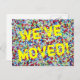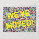 Tarjeta postal animada con textura de purpurina de colores. Texto personalizable; Nos hemos mudado! Agrega tu nueva dirección en la parte posterior. Tarjetas fotográficas modernas para nuevo hogar o ubicación comercial.
