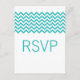 Postal de respuesta simple y elegante de Chevron Boda con moda y elegante borde de patrón de chevron en turquesa. Esta postal sencilla pero audaz RSVP es perfecta para un boda muy moderno. Fácil de personalizar, simplemente agregue los detalles de su boda en los campos de texto proporcionados. Haga clic en "Personalizar" para encontrar más opciones de personalización.