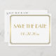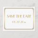 Tarjetas postales Art déco Great Gatsby oro y blanco para guardar la fecha de la boda con texto personalizable
