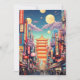 Tarjeta postal artística de viaje a Tokio, paisaje urbano de Tokio, tarjeta postal de arte de pared de Japón, tarjeta postal de ciudad, atardecer, tarjeta postal de viaje