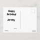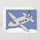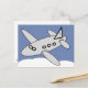 Avión gris con ventanas, volando sobre nubes blancas en un cielo azul. La parte posterior de la tarjeta muestra el saludo "¡Feliz Cumpleaños!" y un nombre que pueden personalizarse.