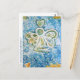 El cuadro es de un ángel blanco y dorado con acentos verdes rodeado de un cielo azul giratorio y corazones dorados. Los ángeles tienen un corazón blanco en lugar de un halo sobre la cabeza del ángel. Personalizar esta tarjeta y hazla personal con tu propio texto.