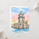 Esta postal cuenta con un retrato acuático de la Torre Belem en Lisboa, Portugal.