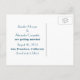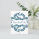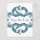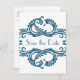 Elegante y refinada Tarjeta postal Chic Damask Save the Date en azul real con un marco de florituras en espiral. Esta tarjeta postal moderna es una elección elegante para la pareja sofisticada. Fácil de personalizar, simplemente agregue los detalles de su boda en los campos proporcionados. Haga clic en el botón "Personalizar" para encontrar más opciones de personalización, como cambiar el color de fondo para que coincida con cualquier esquema de colores de la boda.