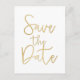 Tarjeta postal con guión moderno para guardar la fecha en blanco y dorado