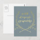 Tarjeta postal de pésame azul plateada elegante de NewParkLane, con cita 'Con el pésame más sentido' en oro, tipografía de pincel.