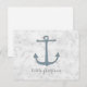 Perfecto para un boda de temática náutica es esta postal con un número de Boda de estilo rústico con ancla azul sobre un fondo de mármol gris claro. Esta tarjeta de mesa clásica y sencilla es fácil de personalizar con los detalles de su boda. Para obtener más opciones de personalización, haga clic en Personalizar.