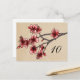 Boda de flores de cerezo dulces y bonitos de cerezos de color vintage Número de la tabla postal con bellas ramas de flores de cerezo rojo sobre un fondo de papel de textura de imitación beige. Esta elegante tarjeta de mesa floral japonesa es perfecta para un boda de primavera o verano sencillo y sofisticado. Fácil de personalizar, simplemente agregue los números de tabla apropiados en los campos de texto proporcionados. Haga clic en "Personalizar" para encontrar más opciones de personalización.