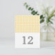 Sencilla pero elegante Houndstoth Table Number Postcard con un fondo moderno de caseta amarillo y blanco. Fácil de personalizar con los detalles de su boda. Para obtener más opciones de personalización, haga clic en el botón Personalizar.